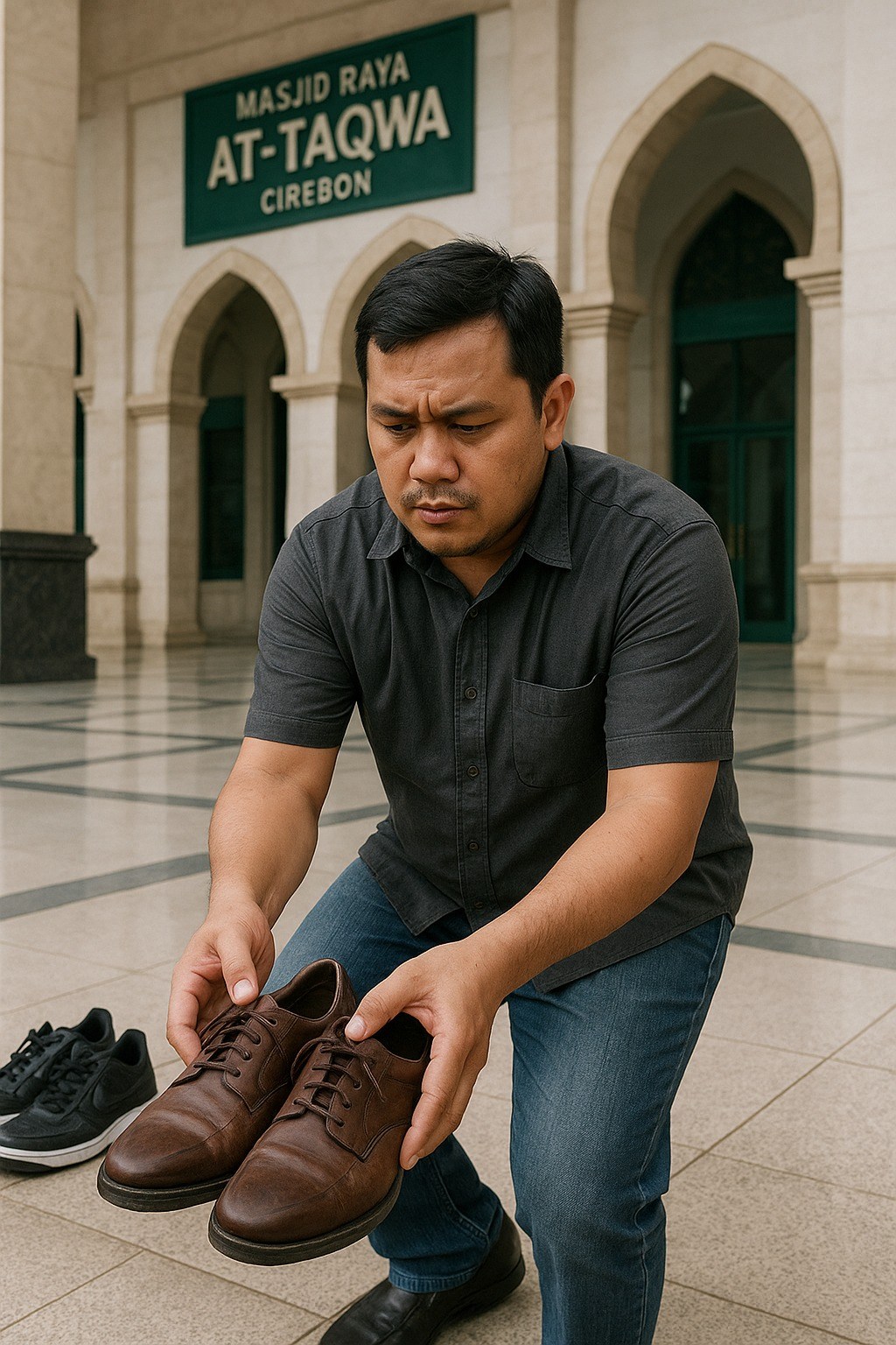 Cirebon panas, tapi yang lebih panas dari cuaca adalah rasa malu satu kota. Bagaimana tidak? Anak mantan wali kota, darah biru pejabat, cucu dari garis keturunan yang biasa pakai parfum impor dan sepatu kulit sapi Australia, tertangkap mencuri sepatu jamaah di masjid. Sepatu, wak! Bukan berlian, bukan duit bansos, bukan tender proyek, tapi sepatu yang mungkin masih bau kaus kaki bekas salat Dzuhur.