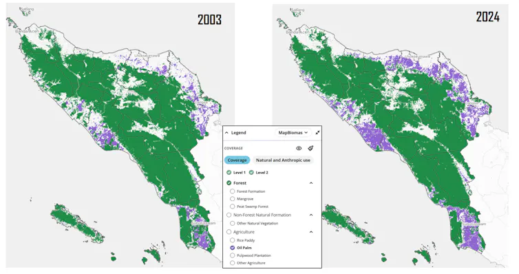 Sementara data lain dari Mapbiomas Indonesia—jejaring organisasi masyarakat sipil yang memetakan penggunaan lahan—mencatat angka lebih besar: lahan sawit di Aceh mencapai lebih dari 628 ribu hektare pada 2025.
