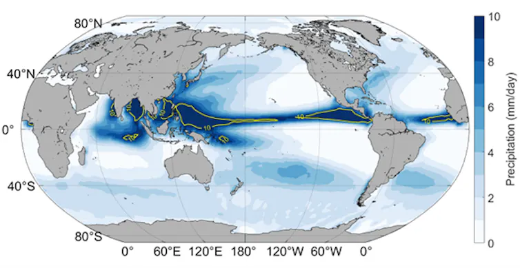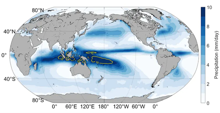 ITCZ melintasi wilayah Indo-Pacific Warm Pool (IPWP) atau kolam panas Indo-Pasifik yang memiliki suhu permukaan laut rata-rata sekitar 28°C. Indonesia berada tepat di jantungnya.