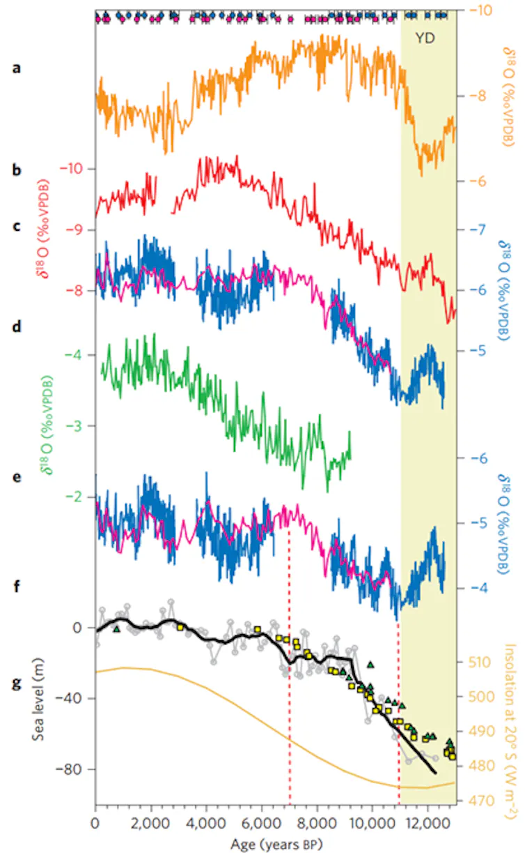 Hal ini menarik, karena perubahan muka air laut periode lampau ternyata berpengaruh terhadap fenomena ITCZ (lihat garis hitam panel bawah Gambar 2).