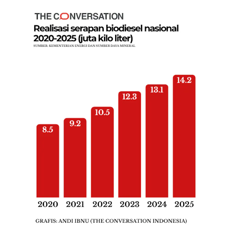Insentif yang disertai aturan wajib pakai ini membuat pemakaian biodiesel dalam waktu 15 tahun ini mengalami kenaikan hampir 10 kali lipat dari 190 ribu kilo liter menjadi 15,6 juta kilo liter per tahun 2025.