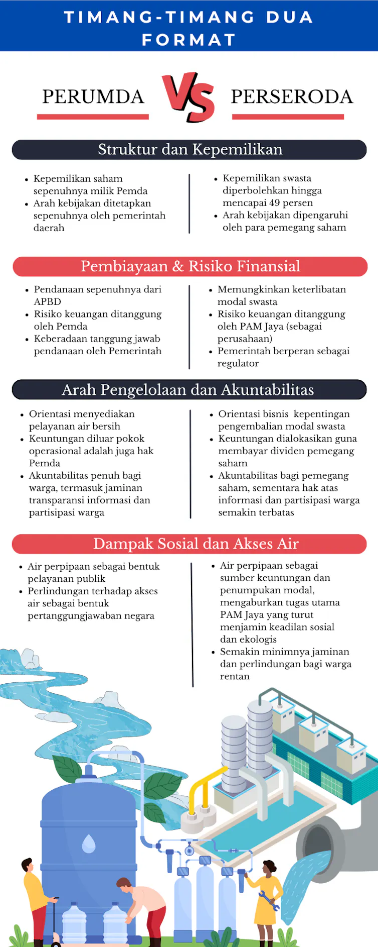 Padahal, status perumda selama ini dianggap menjaga kepentingan publik karena PAM Jaya sepenuhnya dimiliki oleh Pemda Jakarta.